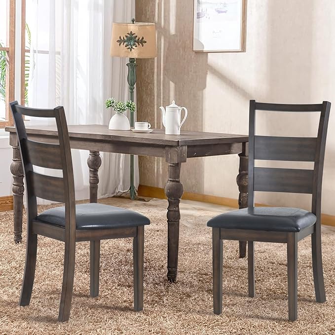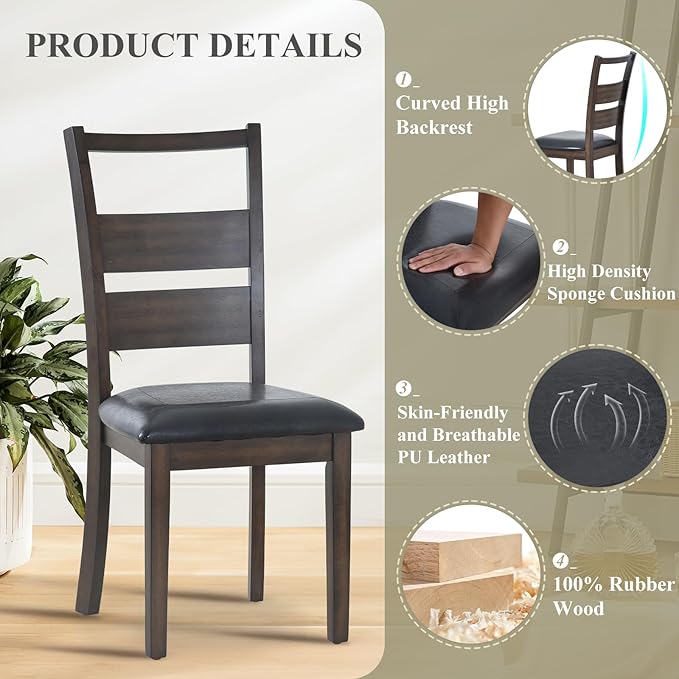 About This 🥘【Fashionable Ladder Back Design】Wooden dining chairs are exquisitely crafted in a modern style, featuring a ladder back design...