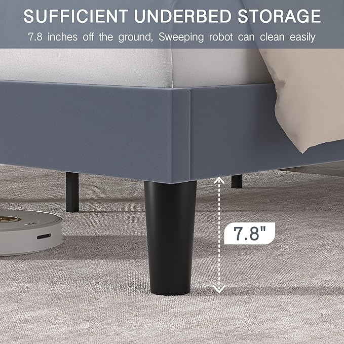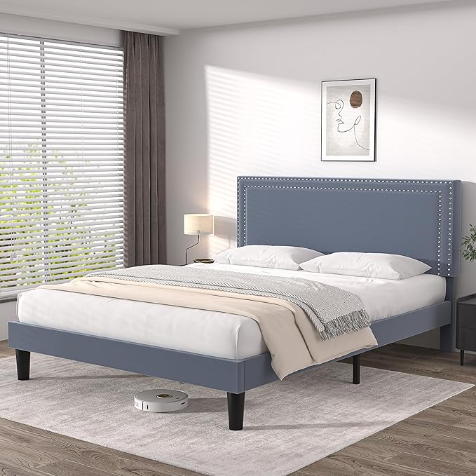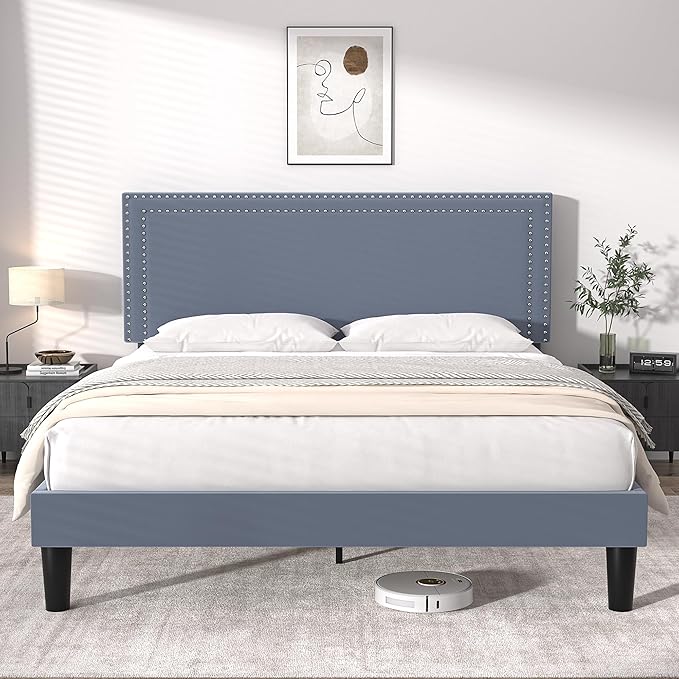 VECELO Full Size Platform Bed Frame with Adjustable Upholstered Headboard, Modern Mattress Foundation,Strong Wood Slat Support, No Box Spring Needed, Easy Assembly