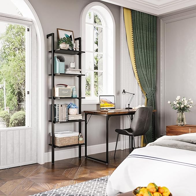 About This MULTIFUNCTIONAL LADDER SHELF: The black shelf for wall is a perfect balance of storage and decor. All your...