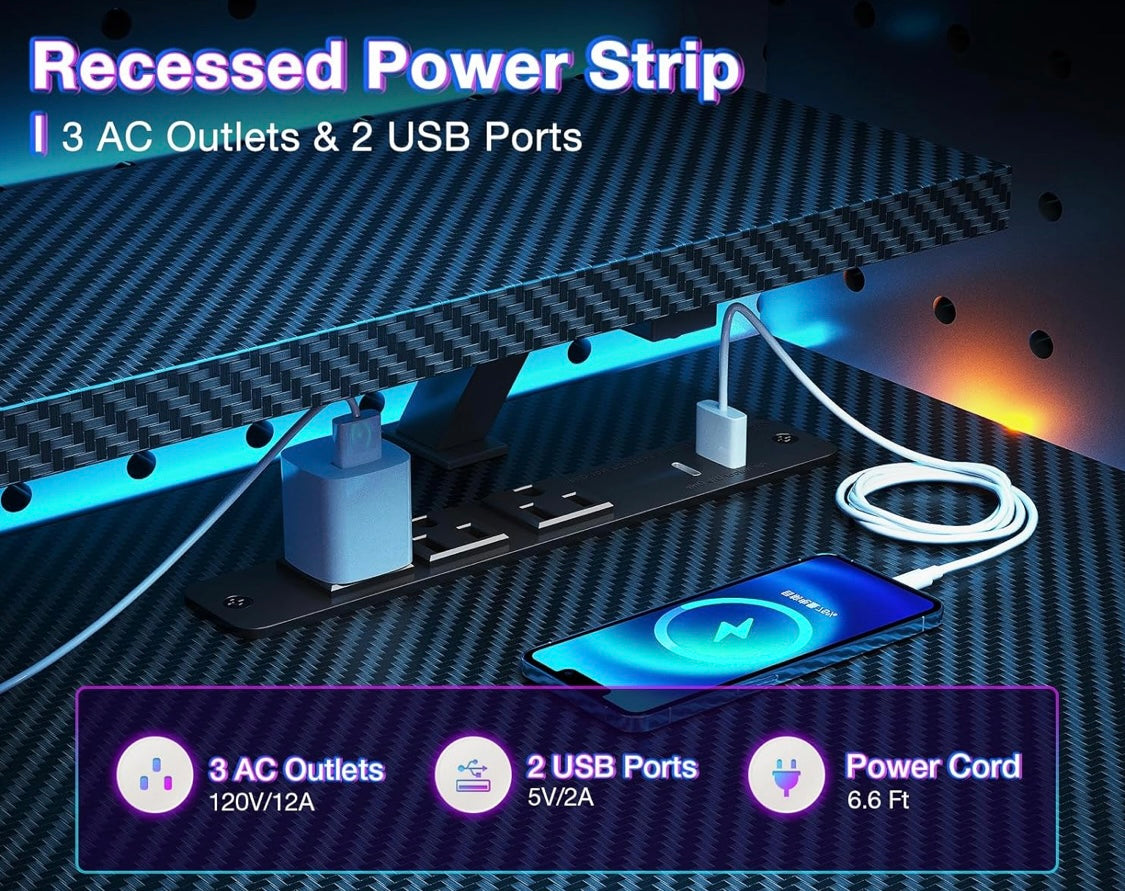 About This 【Gaming Desk with Colorful LED Lights】This gaming table features LED strip that contains 10 static colors, 6 brightness...