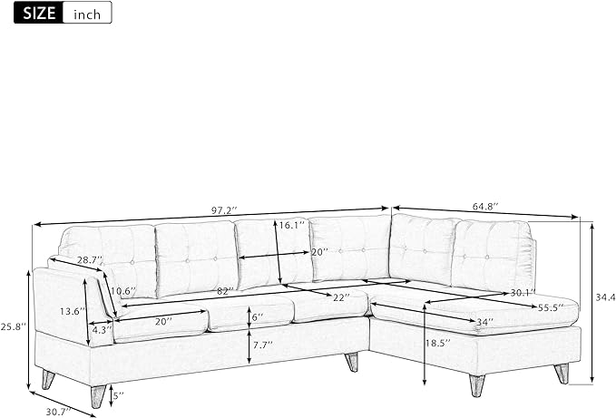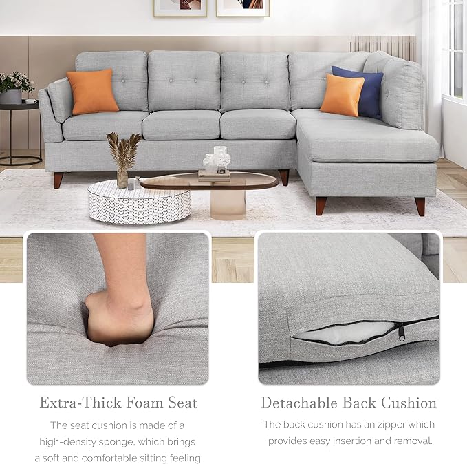 About This Linen Comfortable Sectional Couch - Maximize your living space with the versatile L shaped sofa design, offering ample...