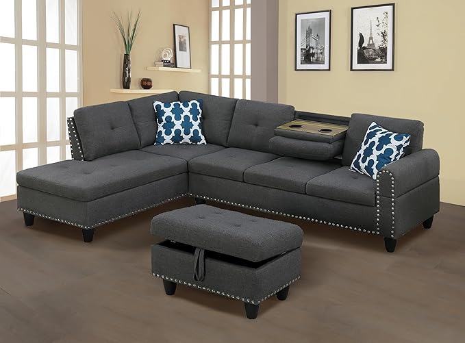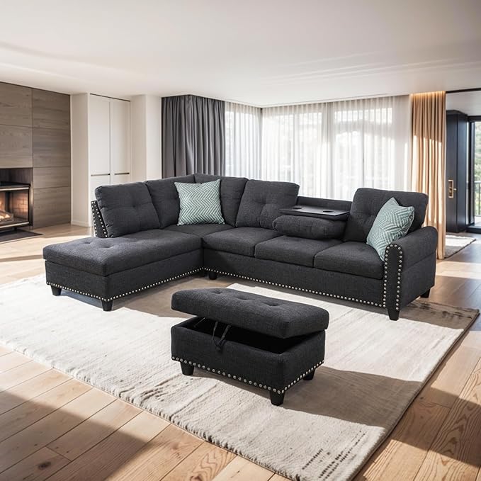 About This ✔[DESIGNED FOR LIVING] Stylish L-shaped sectional sofa is made with comfortable linen fabric & hard wood frame design,...