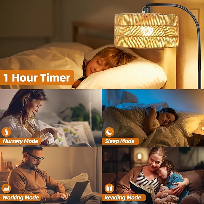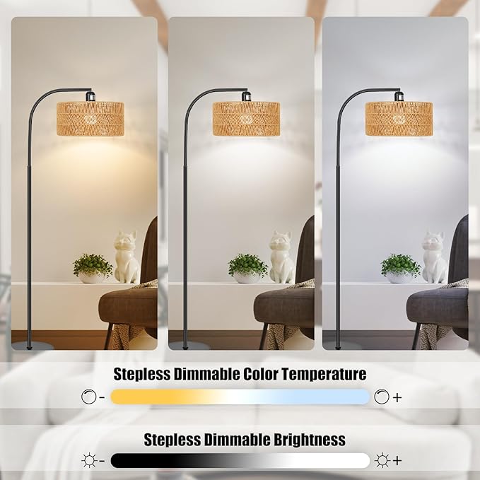 About This 💡【Stepless Dimmable & Color Temperatures】Our boho floor lamp comes with a 9W LED bulb, which can be adjusted...