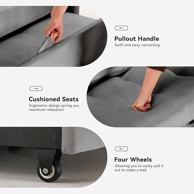 COMHOMA 55" Sleeper Sofa Bed, 3-in-1 Pull Out Couch with Adjustable Backrest and Pillows, Convertible Sleeper Couch for Living Room and Office (Grey)