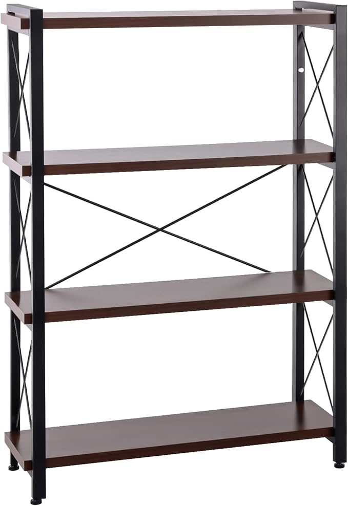 Small Shelf Industrial Bookshelf,4-Tier Wood Short Book Shelf Office Shelves with Metal Frame,Rustic Bookshelves Open Shelf Bookcase for Bedroom,Living Room,Office Home(Berry Brown)