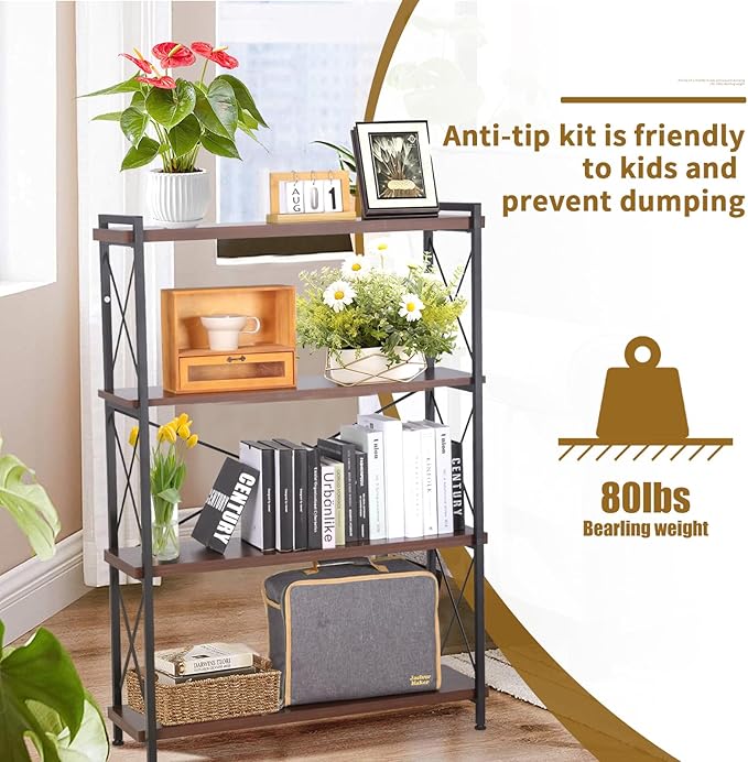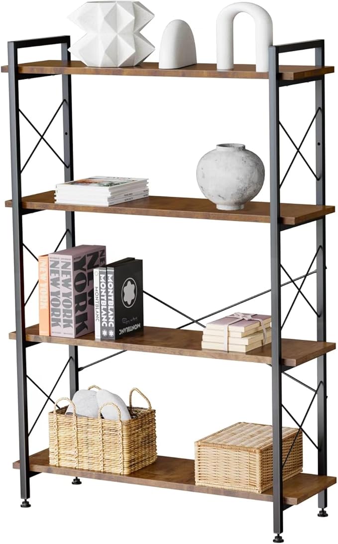 Industrial Bookshelf,Rustic Open Shelf Bookcase,4 Tier Book Shelf for Bedroom Office Living Room,Small Bookshelf for Small Spaces with Metal Frame