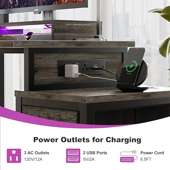 About This Small Desk with Drawers and Storage Shelves: Besiost grey gaming desk is equipped with 2 fabric drawers, multiple...