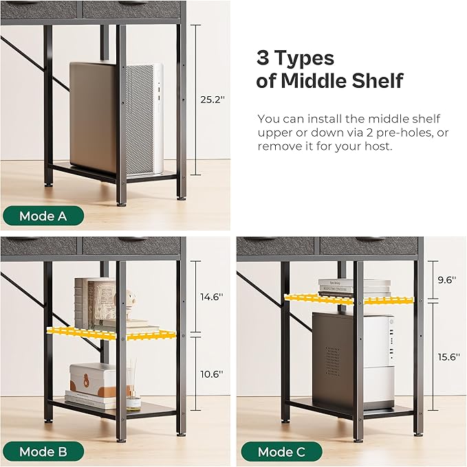 About This 【6 Drawers Computer Desk】With 6 spacious fabric drawers, this home office desk is perfect for keeping your home...