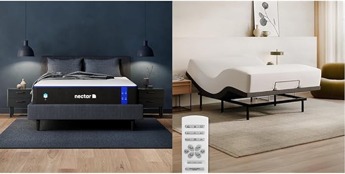 Nectar Queen Adjustable Base and 12” Mattress - Head & Foot Incline - Medium Firm Gel Memory Foam - Cooling Comfort - Wireless Remote - 3 Massage Settings - 365-Night Mattress Trial & Forever Warranty