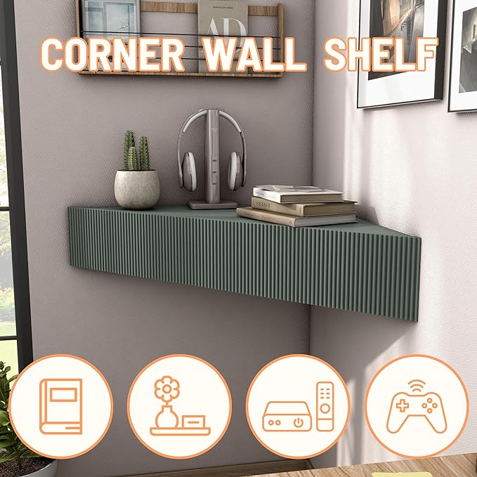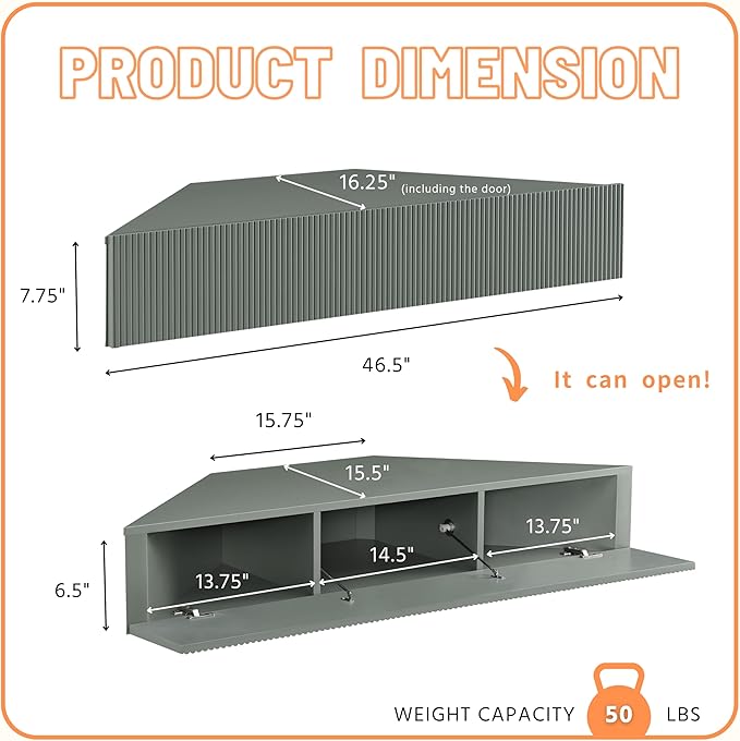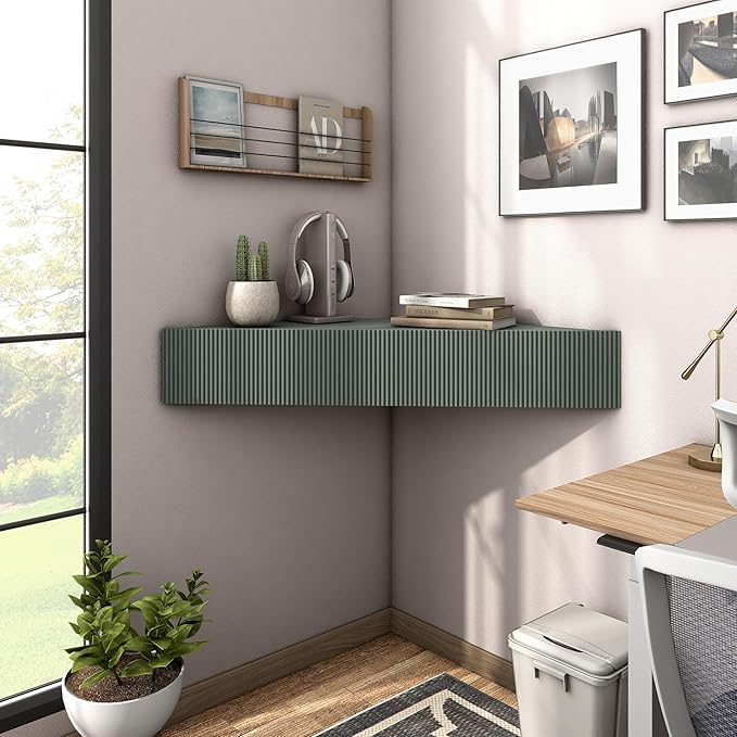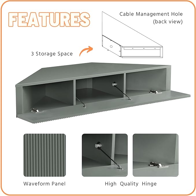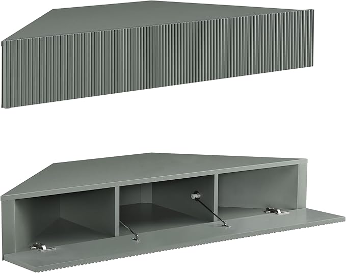 24/7 Shop at Home French 47 inch Modern Floating TV Console Table with 3D Wavy Panel Door, Wood Entertainment Center with Storage Space, Wall Corner Shelf for Living Room, Bedroom, Office, Sage Green