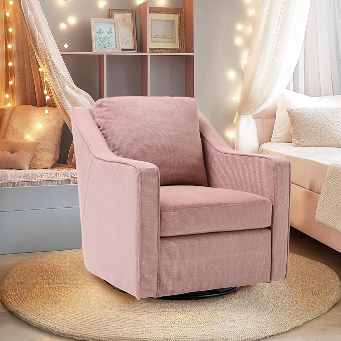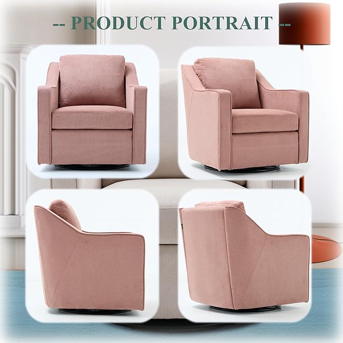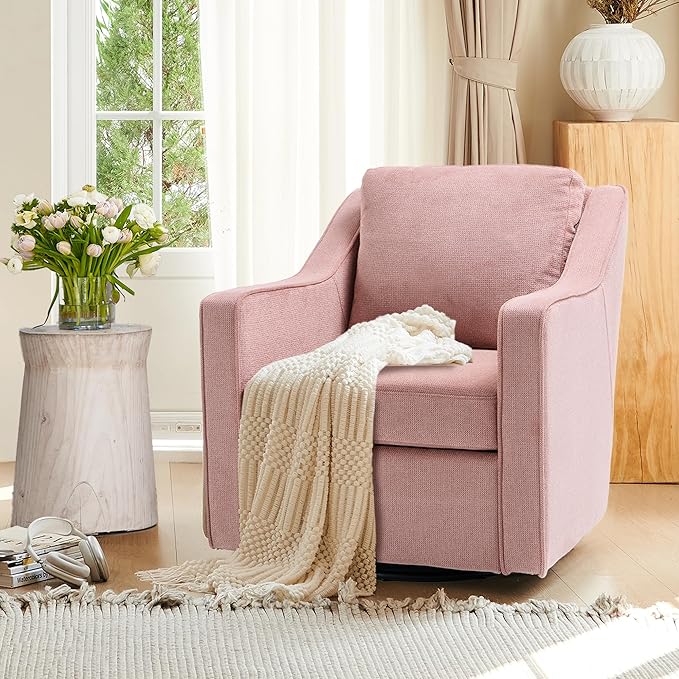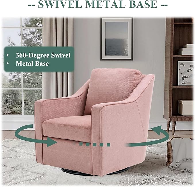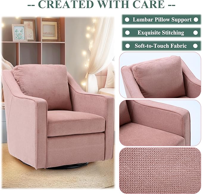 COLAMY 360° Swivel Accent Chair, Upholstered Fabric Leisure Armchair with Lumbar Pillow for Living Room Bedroom Home Office, Pink