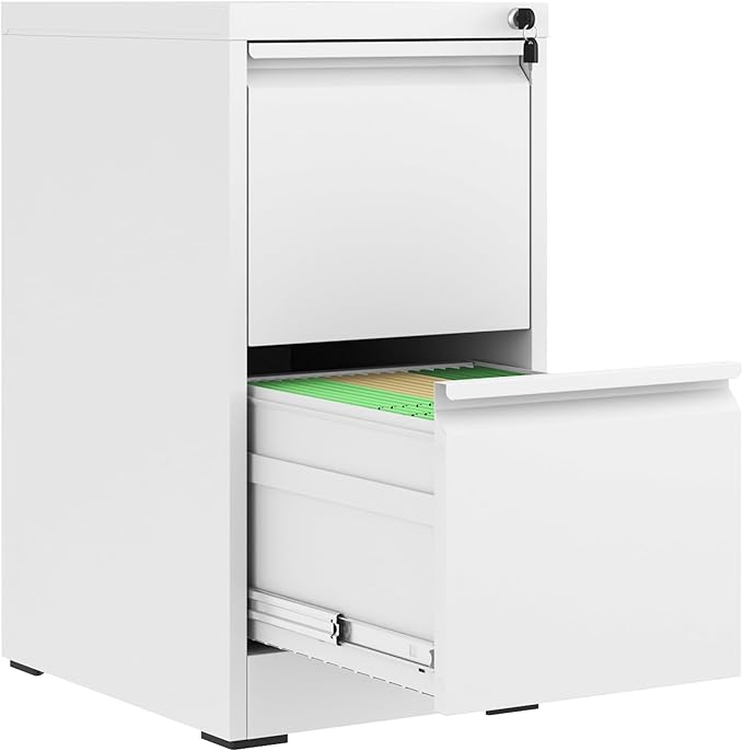 2 Drawer File Cabinet with Lock, Metal Vertical Filing Cabinets for Home Office, Steel Storage Cabinet for Hanging Legal/Letter Size Files, Assembly Required (White)