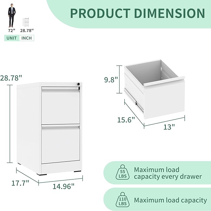 About This ✦【Spacious Storage & Organizaton】This metal 2 drawer black file cabinet offers spacious storage with larger and deeper drawers...