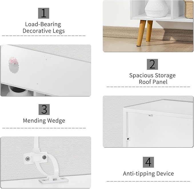 YAHARBO Small 4 Cube White Bookshelf,3 Tier Modern Kids Bookcase with Legs, Wooden Bookshelves Storage Shelf,Book Shelves Organizer,Display Bookcases Cabinet for Room Nursery Study