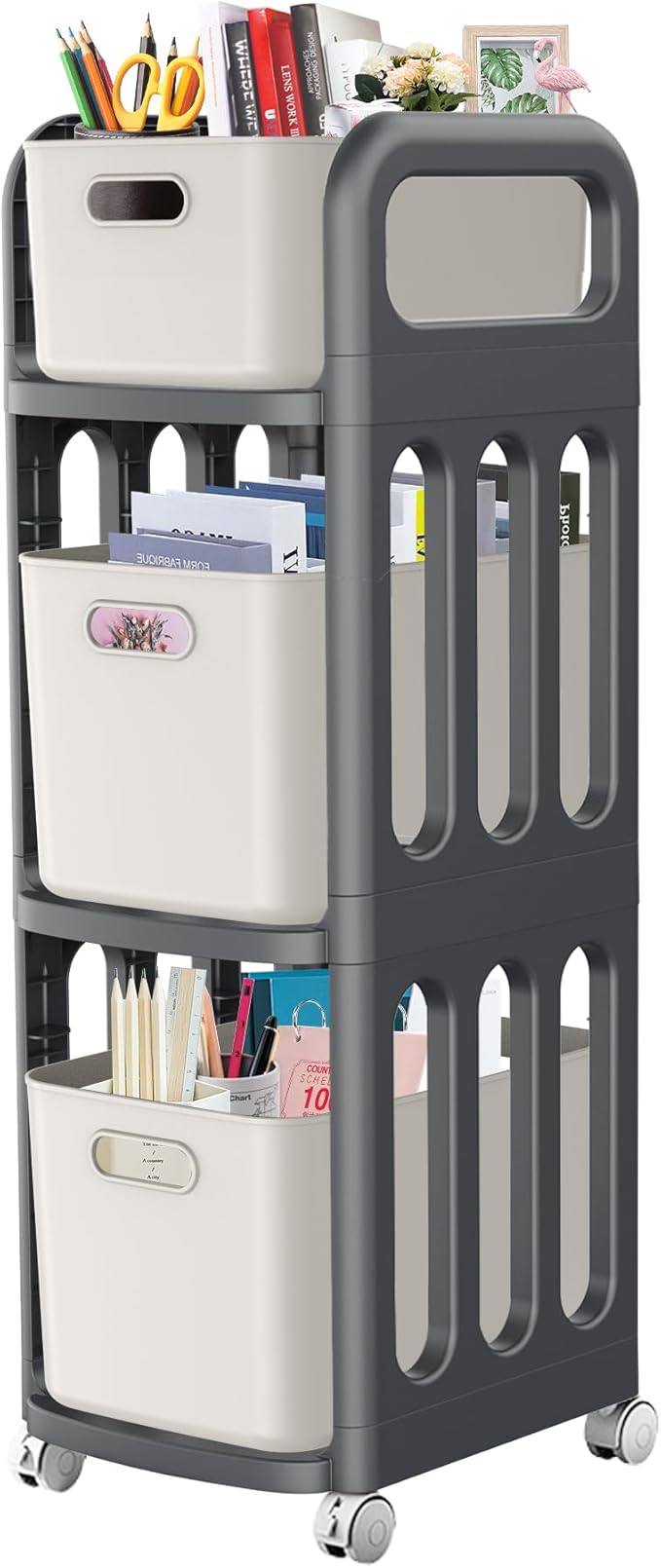 File Cabinet, Easy Assembled Mobile Filing Cabinets with Wheels, 3 Drawer Rolling Cart for Home Office Legal/Letter/A4 Size File