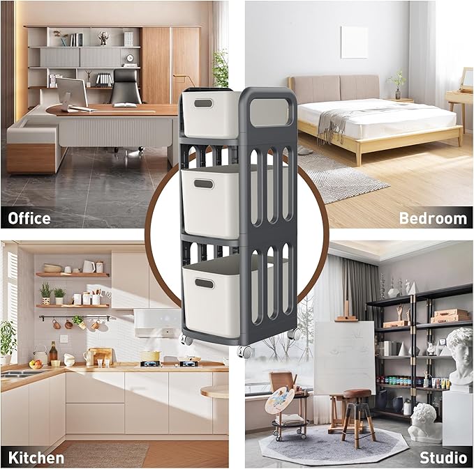 About This 【Multi-purpose File Cabinet】This 3 drawer mobile filing cabinet designed stylish and minimalist. It can be used as an...