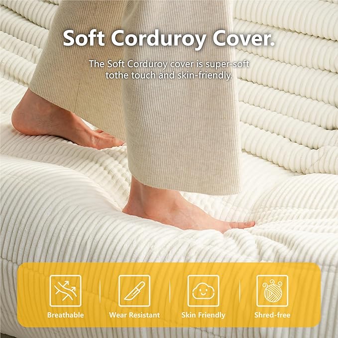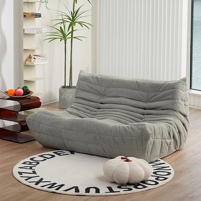 N&V Fireside Loveseat, Mid Century Armless Twin Size Floor Sofa, Soft Premium Corduroy Floor Lounge Chair, Foam Sofa Accent Chair for Living Room Bedroom and Office, Harbour Grey