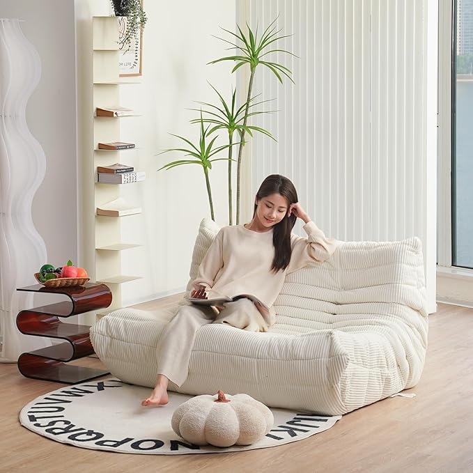 N&V Fireside Loveseat, Mid Century Armless Twin Size Floor Sofa, Soft Premium Corduroy Floor Lounge Chair, Foam Sofa Accent Chair for Living Room Bedroom and Office, Lime