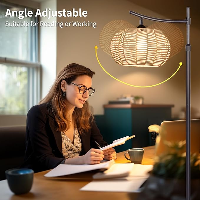 About This [Farmhouse Style Lampshade] The shade of this floor lamp is handmade farmhouse style. Meanwhile, it comes with a...