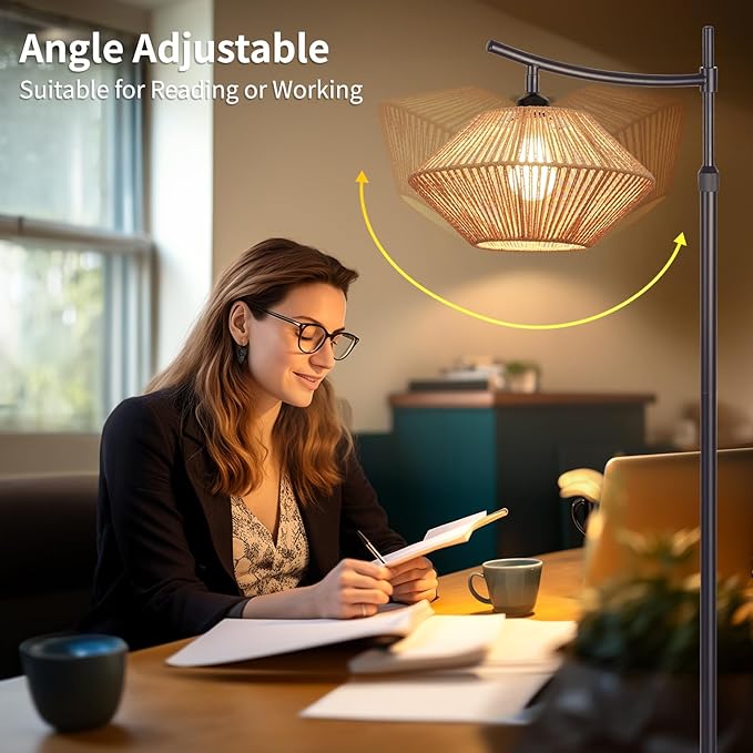 About This [Farmhouse Style Lampshade] The shade of this floor lamp is handmade farmhouse style. Meanwhile, it comes with a...