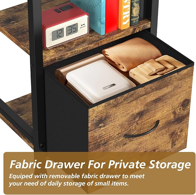 About This 【5-Tier Open Multifunctional Bookshelf】Tall small bookshelf with drawer is designed in size:15.6"L x 11.4"W x 55.5"H, a nice...