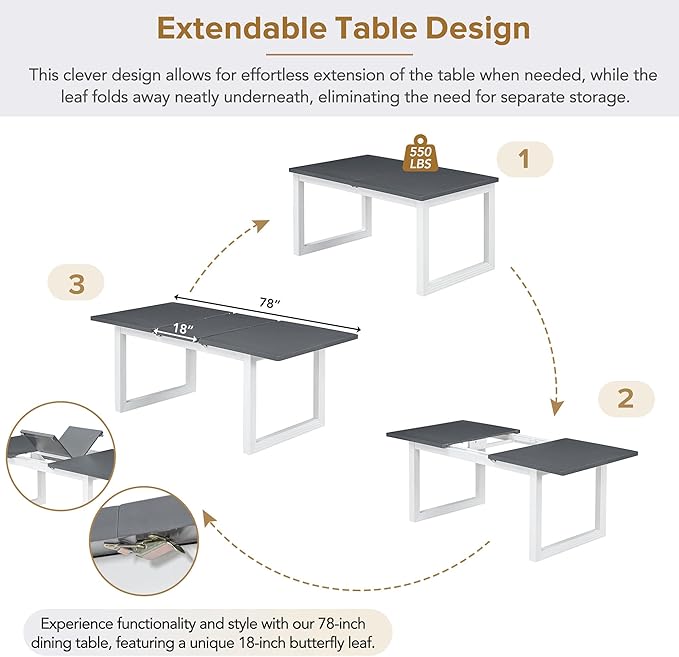 About This Rubber Wood [Extendable Table Design] Experience functionality and style with our 78-inch dining table, featuring a unique 18-inch...