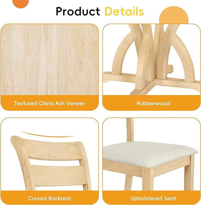 About This Rubber Wood [Pedestal Dining Table Set] This round dining set includes a table and four chairs, featuring a...