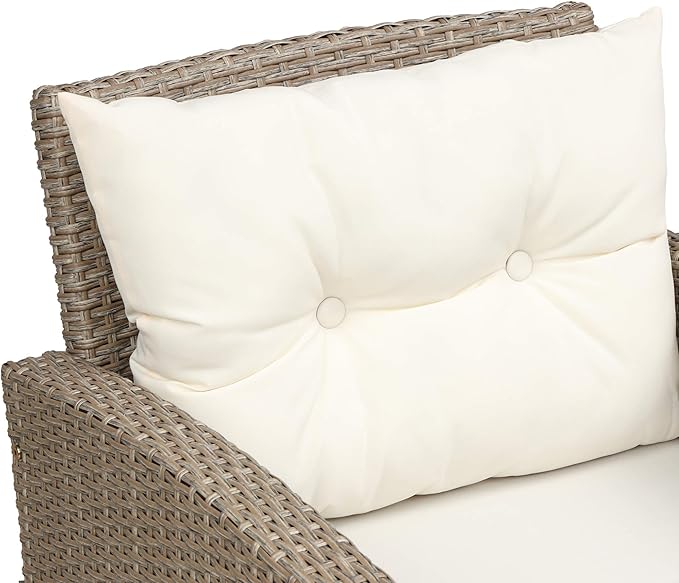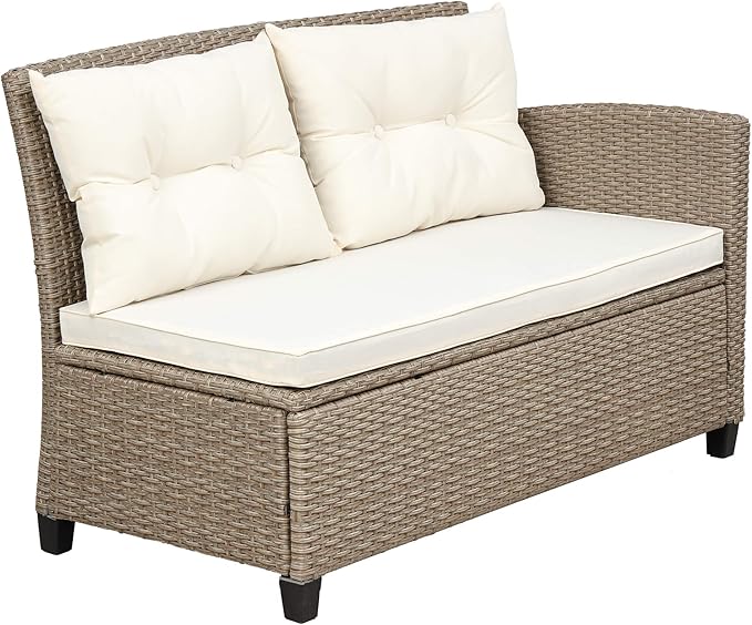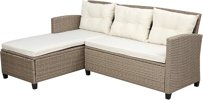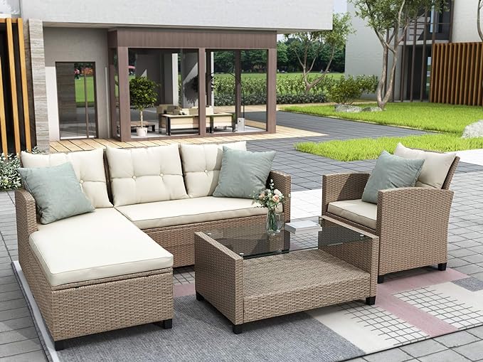 Outdoor Furniture Sets 4 Piece Patio Conversation Sofa with Glass Table, Chaise Lounge and Chair, for Garden Backyard, Onesize, Beige