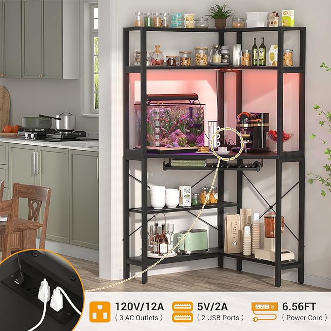 About This 【Corner Desk with Hutch】Cyclysio small corner desk with hutch is mainly composed of iron mesh shelves and wooden...