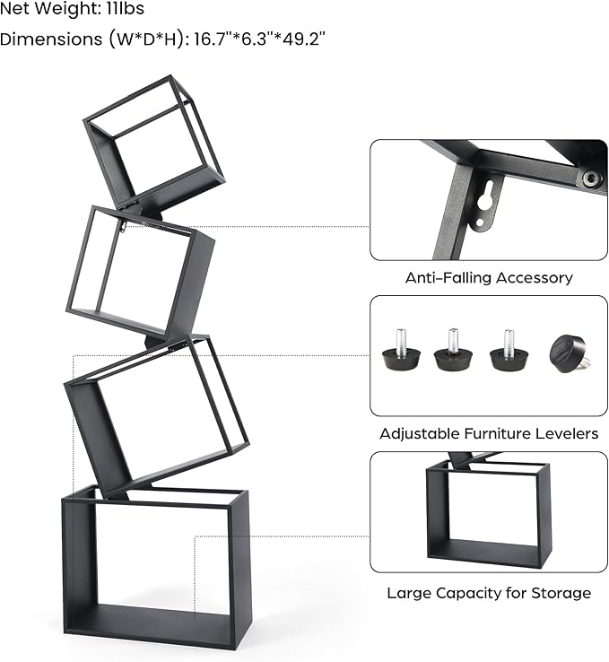 About This Sturdy and Stable: While the book shelf modules seem to float in the air, the 4 tier bookcase...