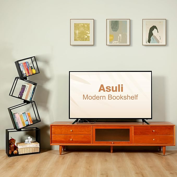 About This Modern Bookshelf Design: This modern-style bookcase is a perfect addition to any home decor. The black color gives...