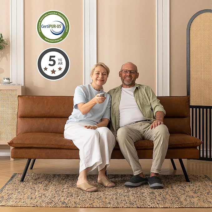 Futon Sofa Bed, Memory Foam Futon Couch with Adjustable Backrest, Multi-Functional Design Convertible Sofa Bed, Space-Saving Sleeper Sofa for Living Room(Brown-PU)