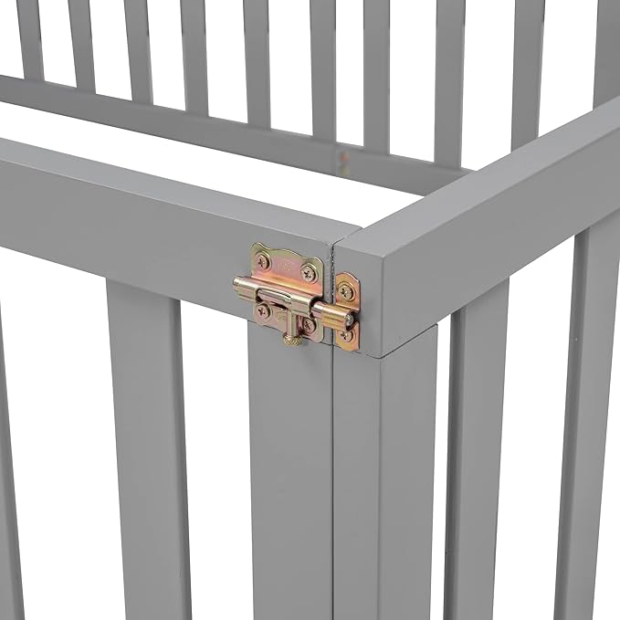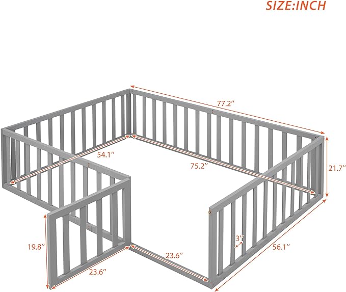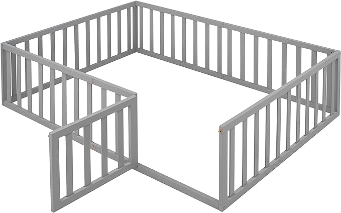 Multifunctional Full Size Floor Bed with Safety Guardrails and Door, Montessori Sturdy Solid Wood Beds Frame, Easy Assembly and No Spring Need, for Boys and Girls Room, Gray