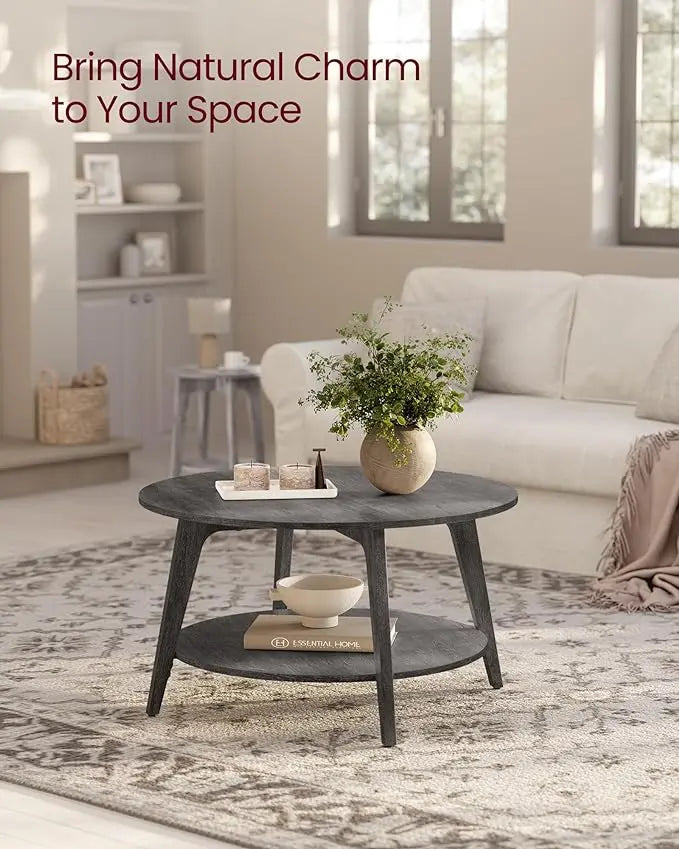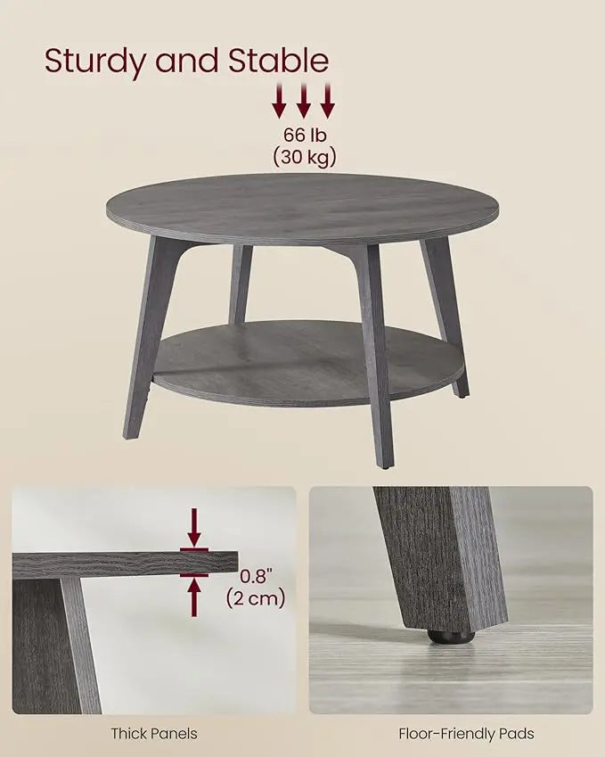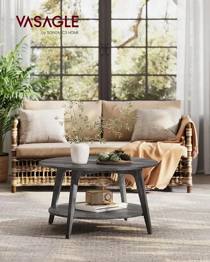 VASAGLE Round Coffee Table, 2 Tier Coffee Table with Storage, for Living Room, 31.5 x 17.7 Inches, Easy to Assemble, Misty Gray ULCT243G68