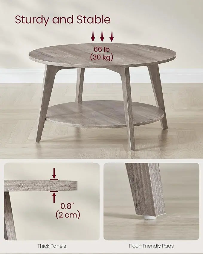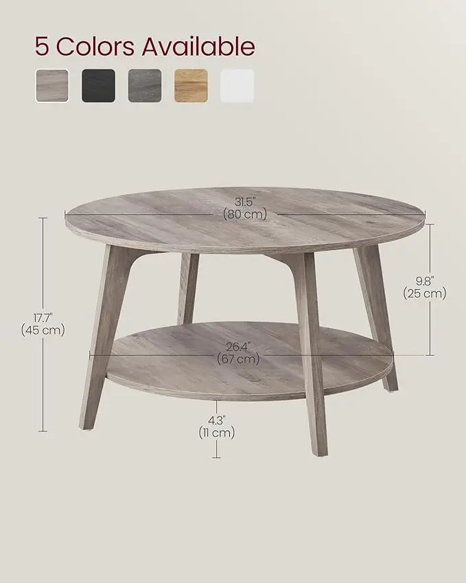 VASAGLE Round Coffee Table, 2 Tier Coffee Table with Storage, for Living Room, 31.5 x 17.7 Inches, Easy to Assemble, Heather Greige ULCT243K02