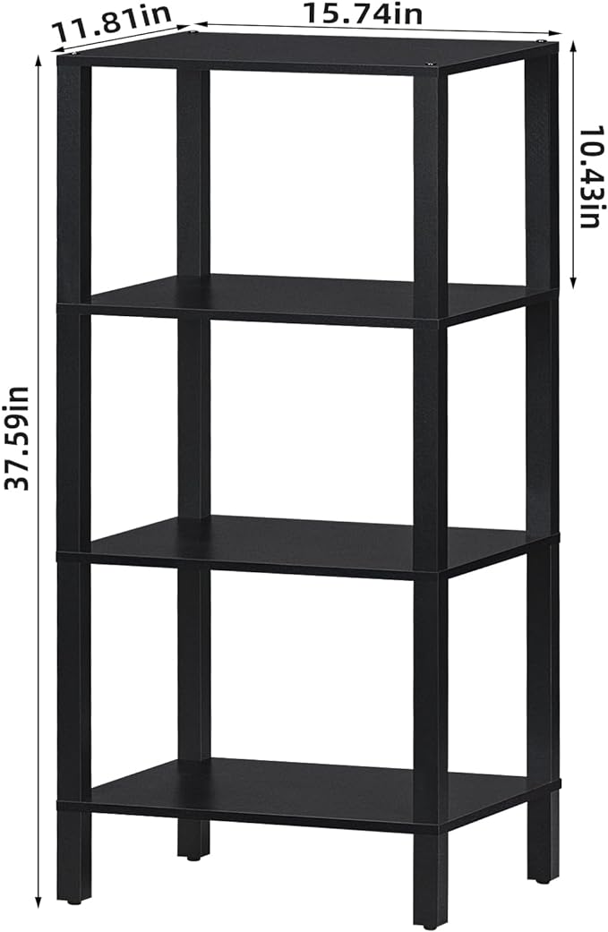 4 Tier Tall Wooden Bookshelf with Storage, Narrow Bookcase for Small Space, Small Book Shelf for Living Room, Office, Bedroom, Kitchen, Industrial, Black