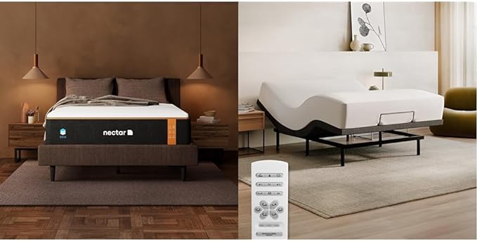 Nectar Full Adjustable Base & 14” Premier Copper Mattress - Head & Foot Incline - Medium Firm Gel Memory Foam - Triple Action Cooling - Massage - 365-Night Mattress Trial & Forever Warranty