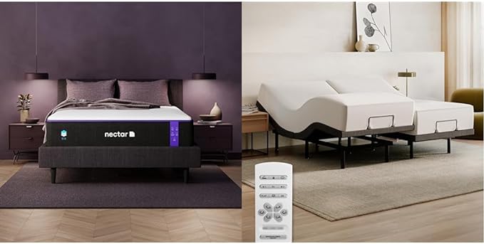 Nectar King Adjustable Base & 13” Premier Mattress - Head & Foot Incline - Medium Firm Gel Memory Foam - Dual Action Cooling - Wireless Remote - Massage - 365-Night Mattress Trial & Forever Warranty