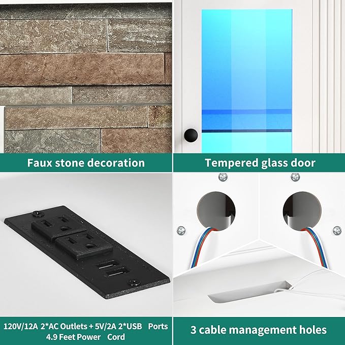 YITAHOME TV Stand for 65 55 Inch TV with LED Light & Power Outlets, 30'' Tall Highboy Entertainment Center TV Cabinets w/Glass Doors, Mid Century Modern TV Media Console Table for Living Room, White