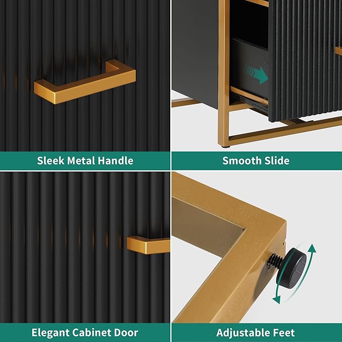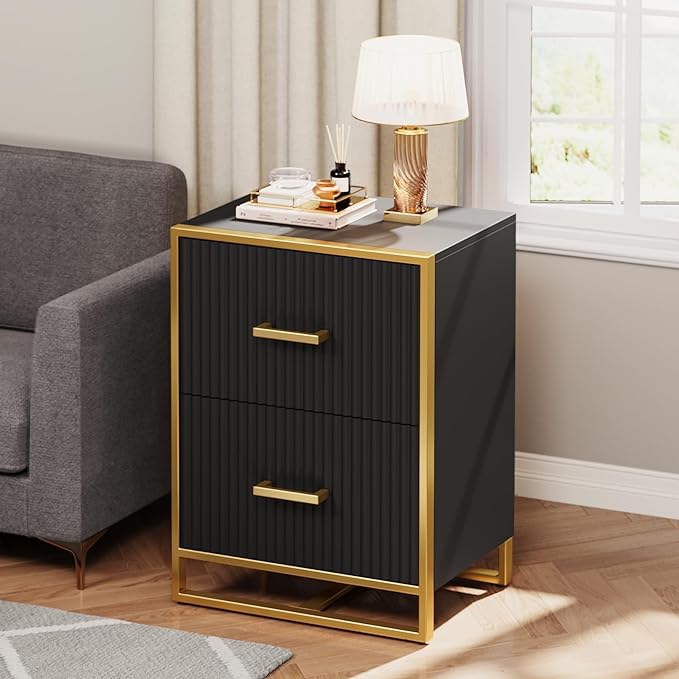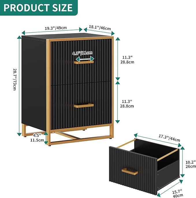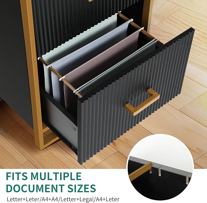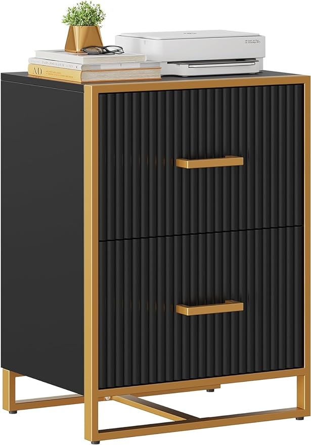 YITAHOME 2 Drawer File Cabinet, Lateral Filing Cabinet for Home Office, Black and Gold