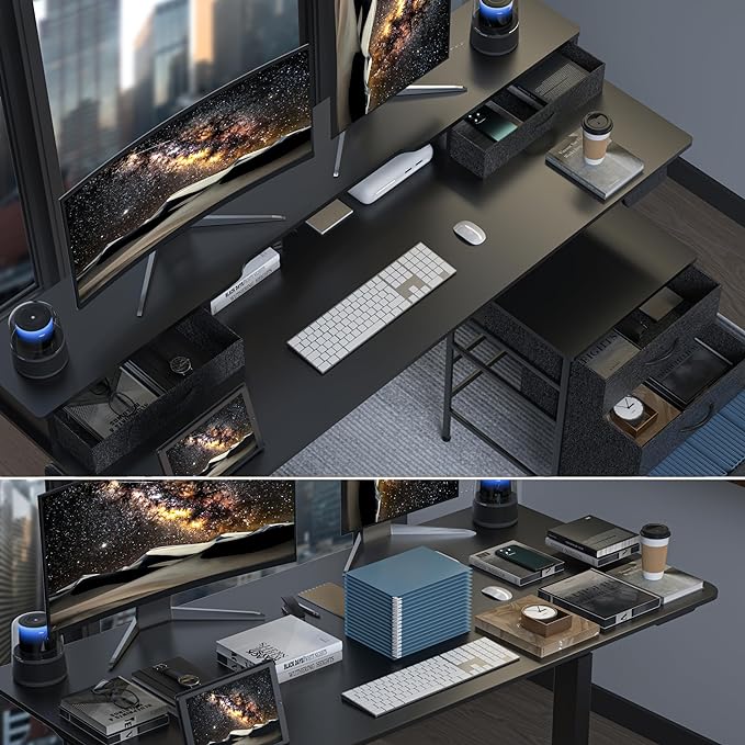 55 Inch Electric Standing Desk with Cabinet & Drawers, Height Adjustable Sit Stand Desk with Monitor Shelf, Smart Home Office Standing Computer Desk, Black