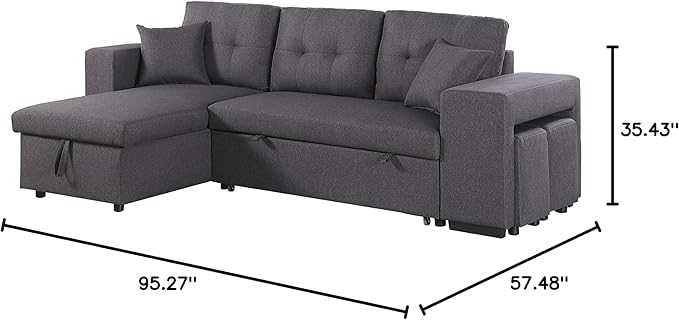 RITSU Reversible Sectional Sofa, Pull Out Loveseat Sleeper Bed Storage Space and 2 Stools, Corner Couch with Side Cabinets, Suitable for Living Room, Apartment Dark Gray, 95.27inch