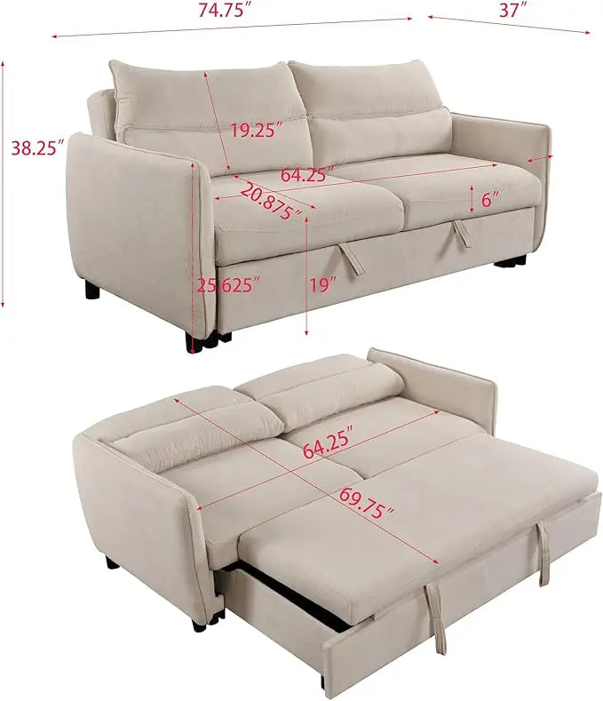 About This Comfy Corduroy Upholstered Futon Couch Loveseat Pull Out Bed⚡The surface of our loveseat sofa bed is selected from...