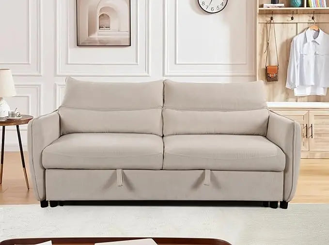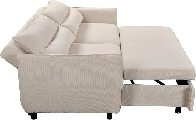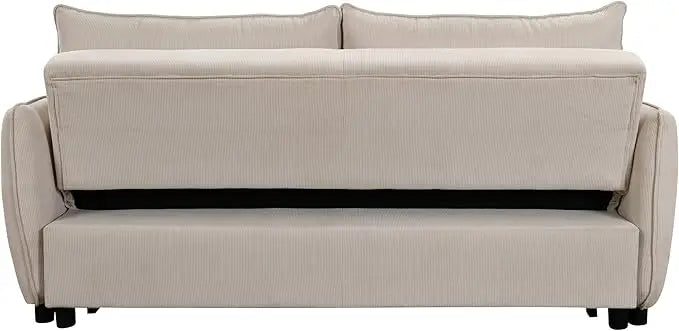 Corduroy Upholstered Convertible Futon Loveseat Sofa Bed, 3 Seater Multi-Functional Reclining Couch Pull Out Sofabed Sofá Cama Para Sala w/Adjustable Backrest, Furniture for Living Room Office