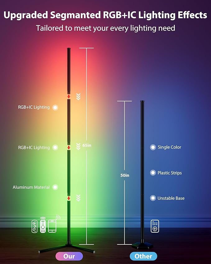 Corner Floor Lamp, 65" Smart RGB Color Changing LED Floor Lamp with APP and Remote Control, Modern Mood Lighting Corner Lamp with Music Sync, DIY Mode & Timing for Living Room Gaming Room