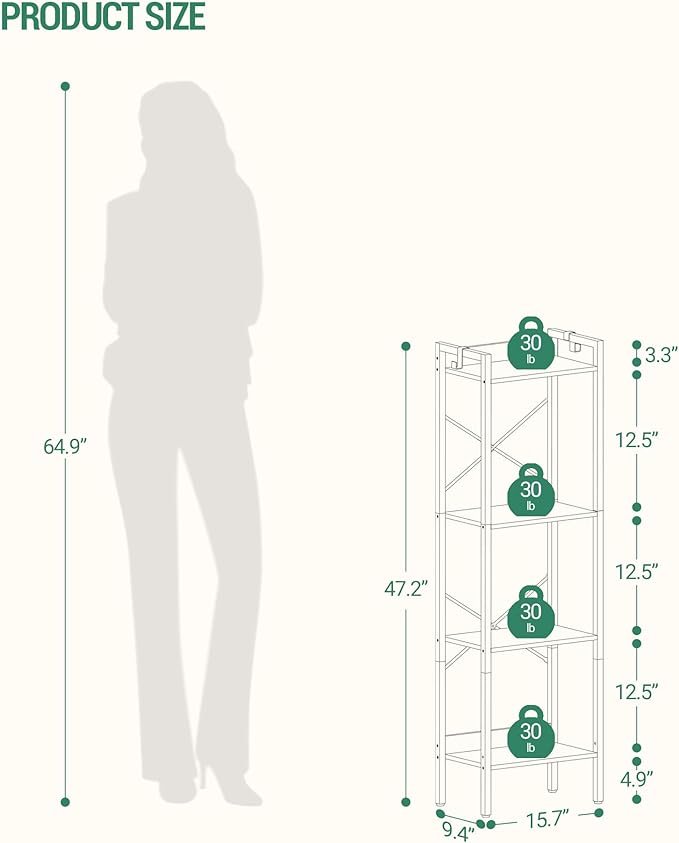 About This [Space-Saving for Any Room] This 9.5"D x 15.7"W x 47.2"H narrow bookshelf occupies little floor space yet offers...