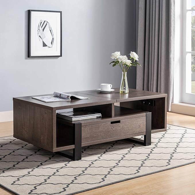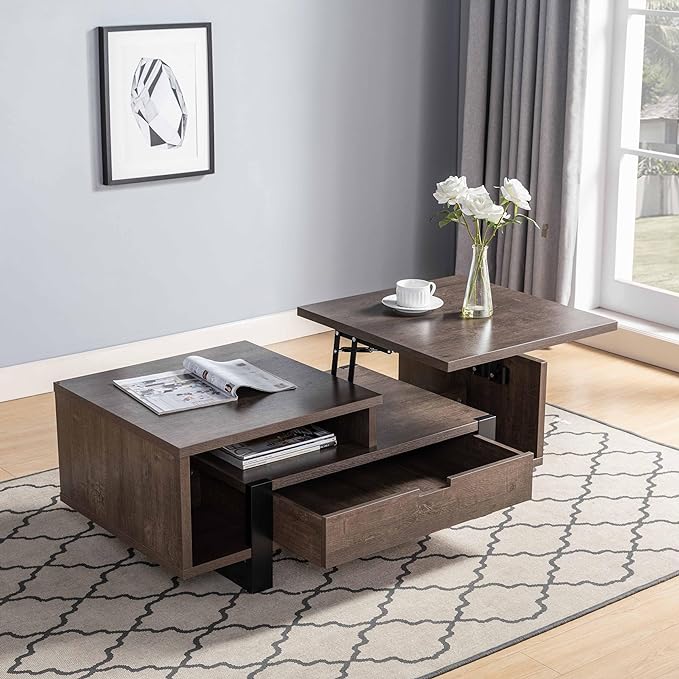 NicBex Coffee Table Wooden Lift Top Coffee Table with Storage Center Tables with Drawer and Shelf Lift Tabletop Dining Table for Living Room, Office, and Bedroom,46.75" W, Dark Brown
