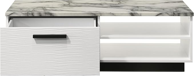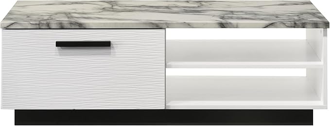 NicBex Coffee Table Faux Marble Coffee Table with Storage Rectangle Center Tables with Open Shelves and Drawer Dining Table for Living Room, Dining Room, Office, and Bedroom,47" W, White
