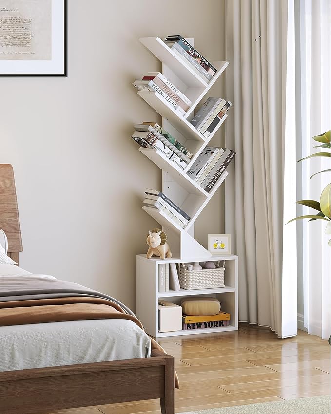 About This 【Small Bookshelf for Small Spaces】- Featuring a compact design, the floor standing tree bookshelf optimizes floor space, making...
