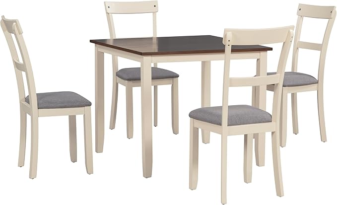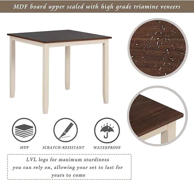 5 Piece Set Industrial Wooden Table and 4 Chairs, with High-Density Foam Burlap Upholstered Cushions for Dining, Living Room, and Kitchen, Easy to Assemble, Brown+Cottage White